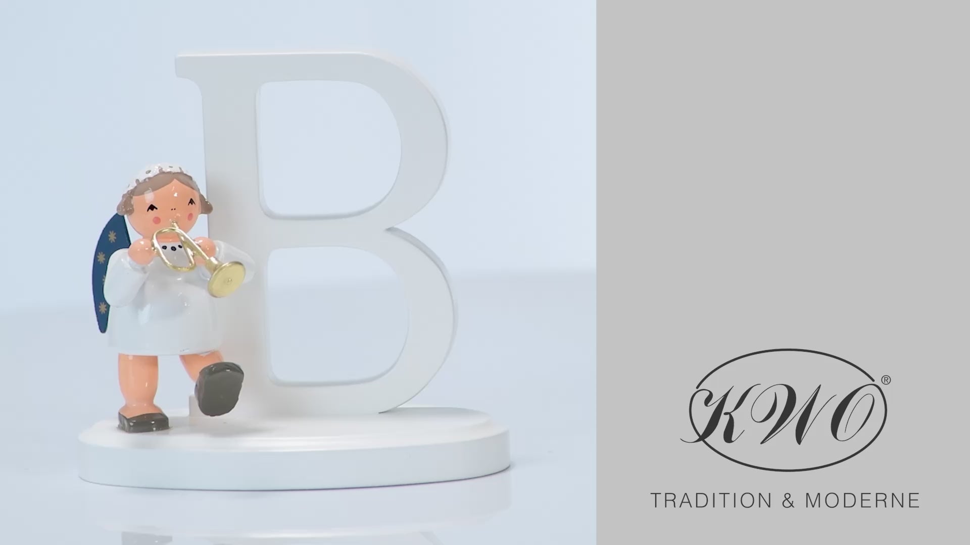 Der KWO Buchstabenengel "B" (Art. 75761) trägt ein weißes Gewand, die Flügel sind dunkelblau und mit 5 goldenen Sternchen bemalt. Der Buchstabenengel "B" wird in traditioneller Handwerkskunst im Erzgebirge mit viel Liebe zum Detail von Hand gefertigt.