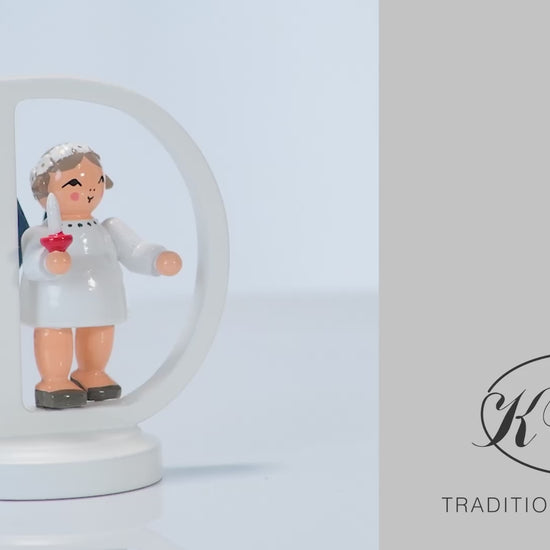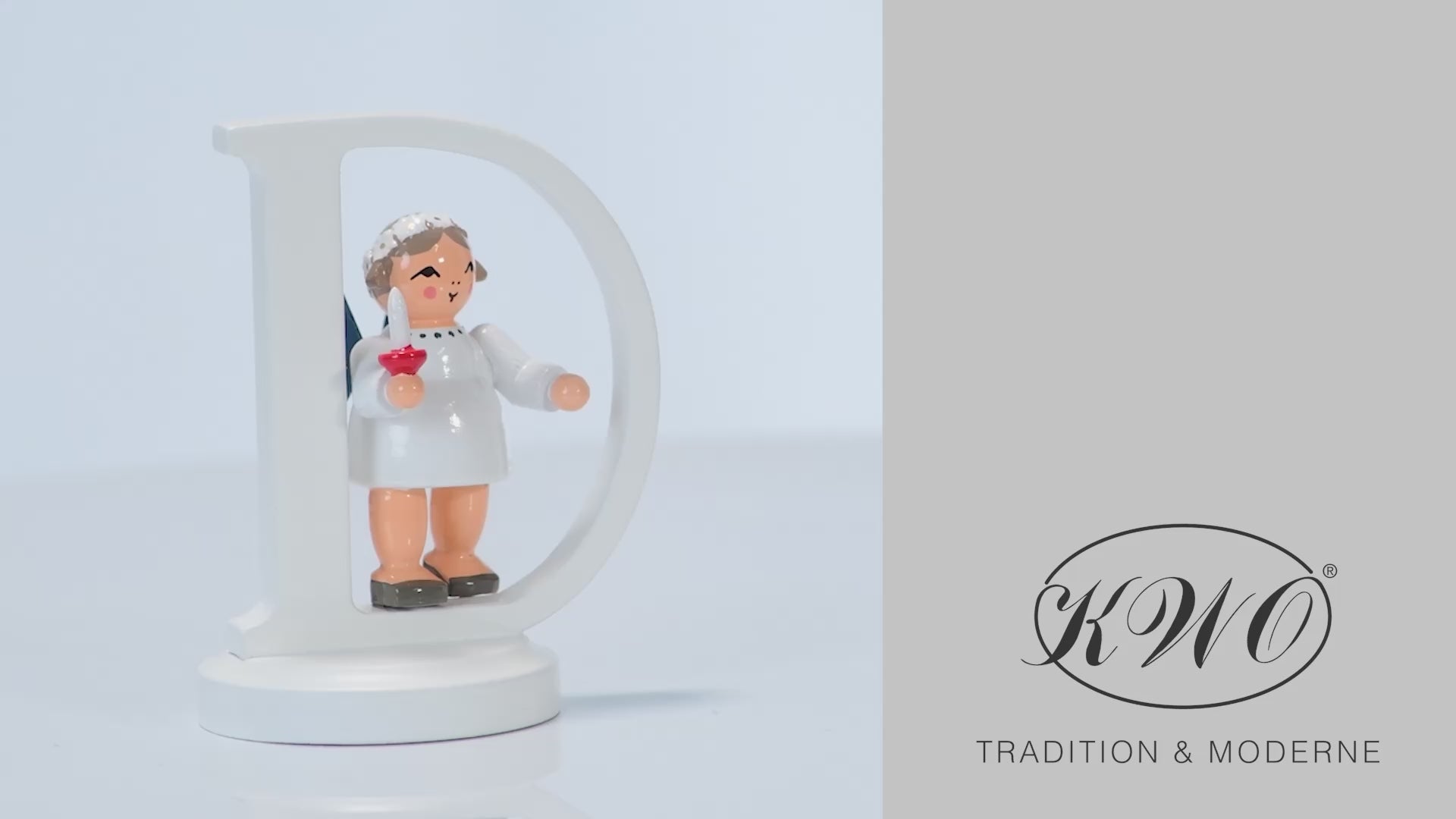 Der KWO Buchstabenengel "D" (Art. 75763) trägt ein weißes Gewand, die Flügel sind dunkelblau und mit 5 goldenen Sternchen bemalt. Der Buchstabenengel "D" wird in traditioneller Handwerkskunst im Erzgebirge mit viel Liebe zum Detail von Hand gefertigt.