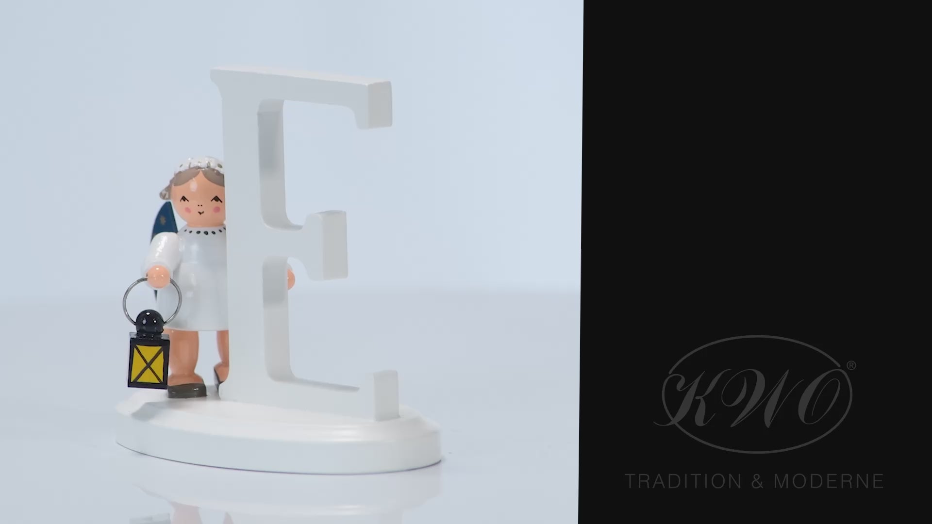 Der KWO Buchstabenengel "E" (Art. 75764) trägt ein weißes Gewand, die Flügel sind dunkelblau und mit 5 goldenen Sternchen bemalt. Der Buchstabenengel "E" wird in traditioneller Handwerkskunst im Erzgebirge mit viel Liebe zum Detail von Hand gefertigt.