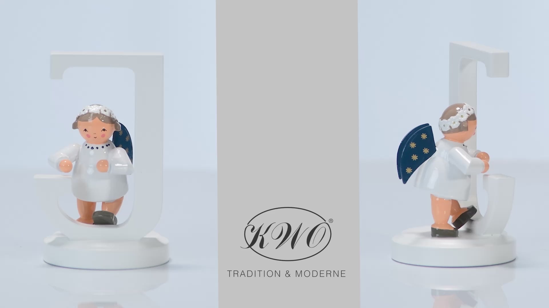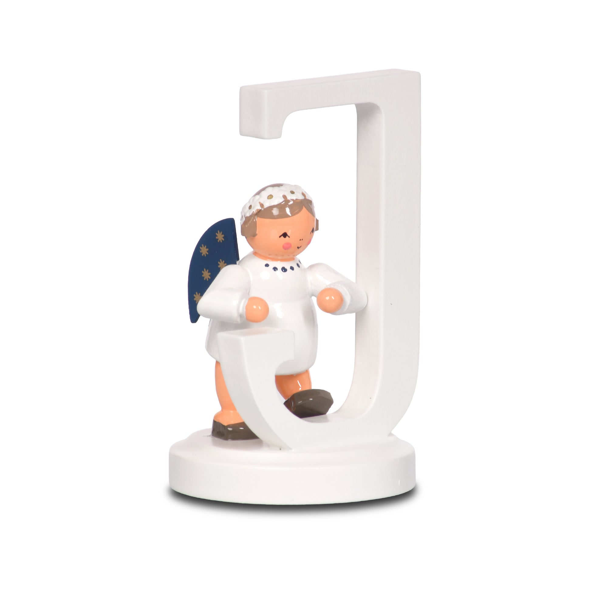 Der KWO Buchstabenengel "J" (Art. 75769) trägt ein weißes Gewand, die Flügel sind dunkelblau und mit 5 goldenen Sternchen bemalt. Der Buchstabenengel "J" wird in traditioneller Handwerkskunst im Erzgebirge mit viel Liebe zum Detail von Hand gefertigt.