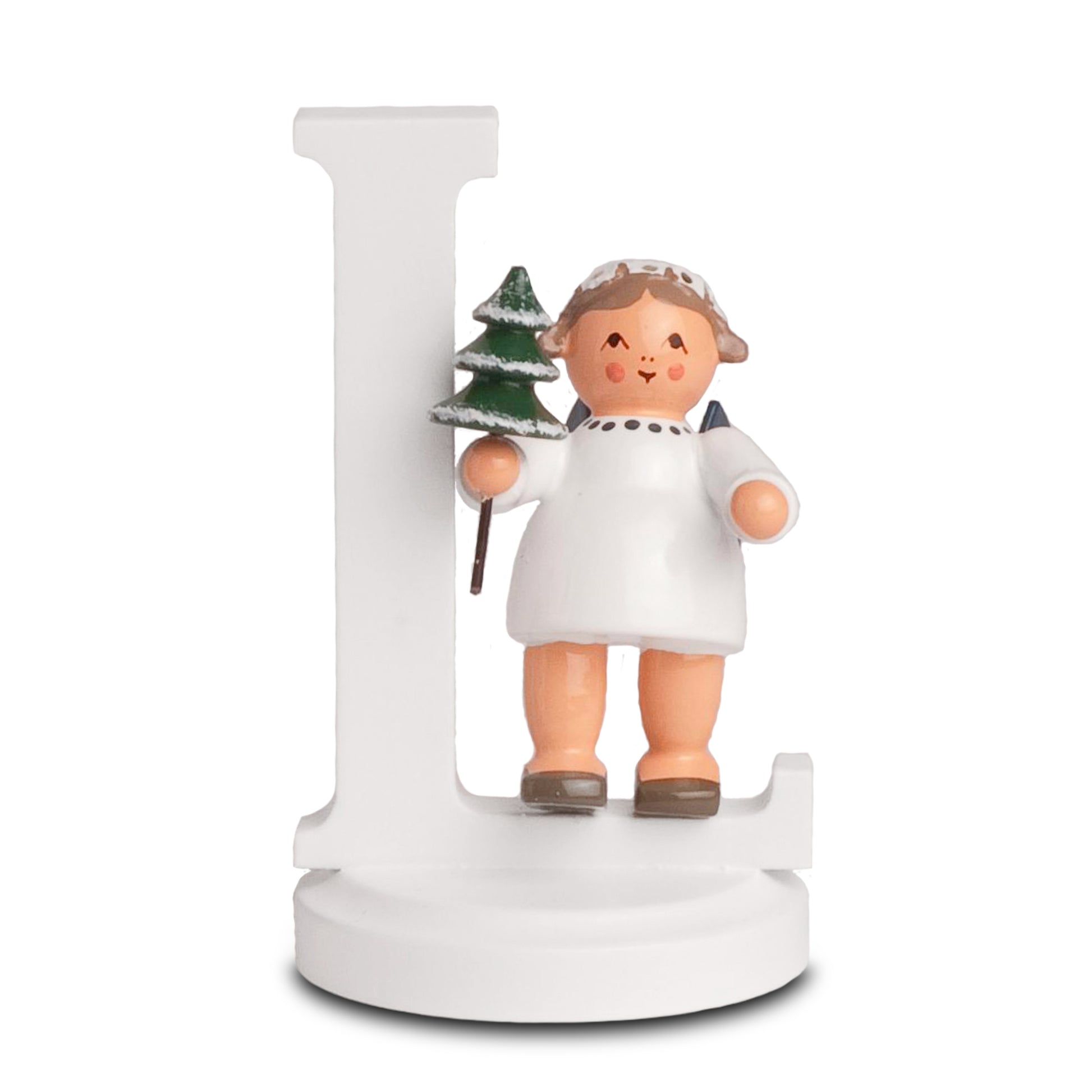 Der KWO Buchstabenengel "L" (Art. 75771) trägt ein weißes Gewand, die Flügel sind dunkelblau und mit 5 goldenen Sternchen bemalt. Der Buchstabenengel "L" wird in traditioneller Handwerkskunst im Erzgebirge mit viel Liebe zum Detail von Hand gefertigt.