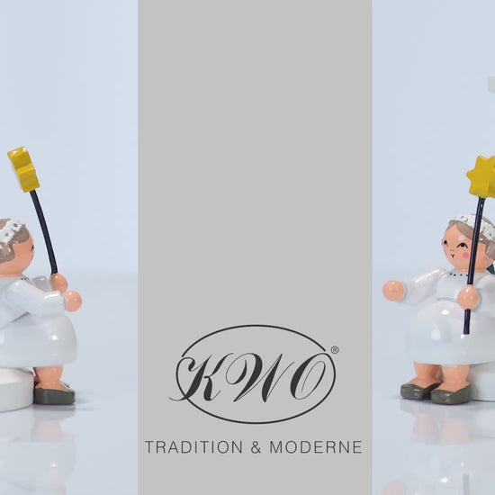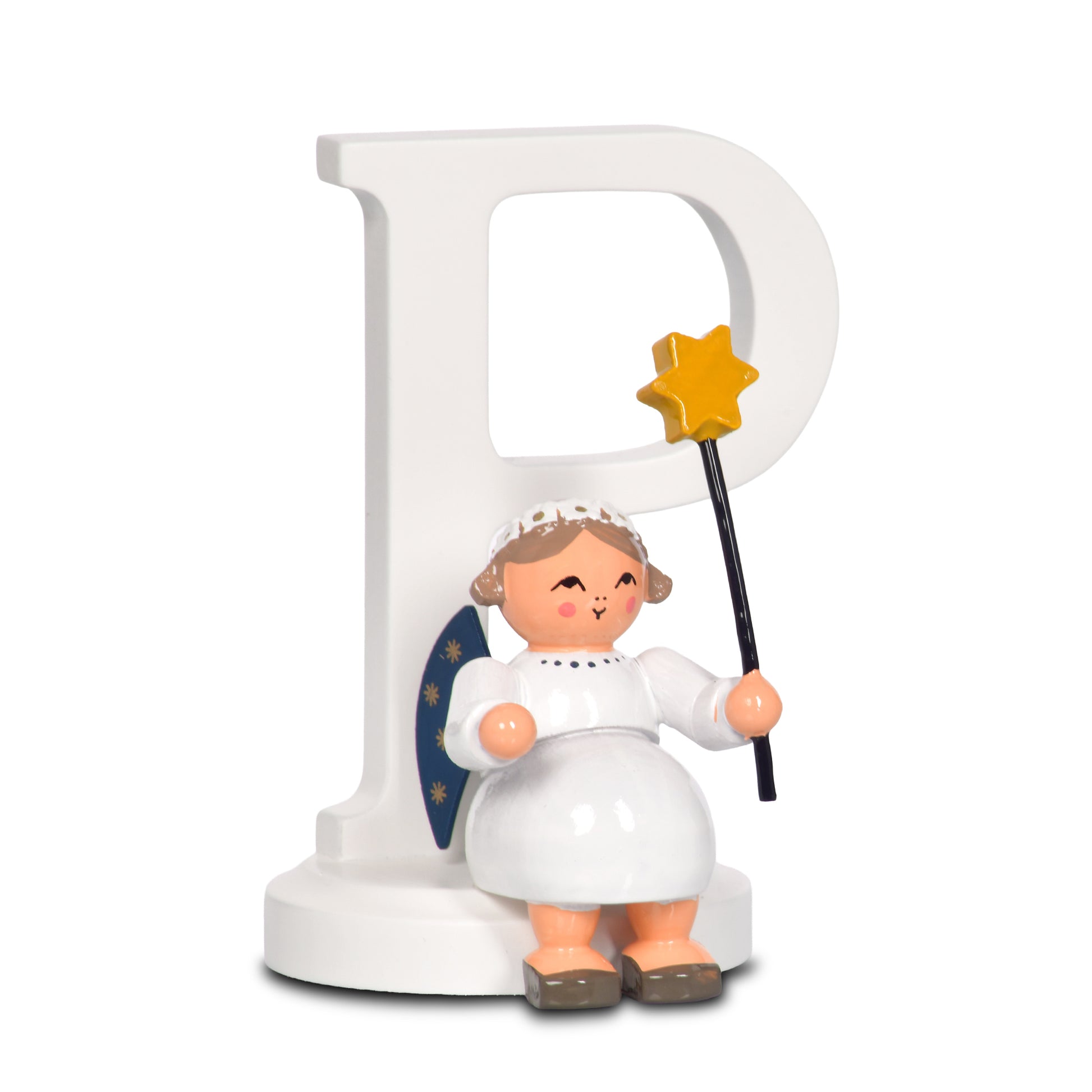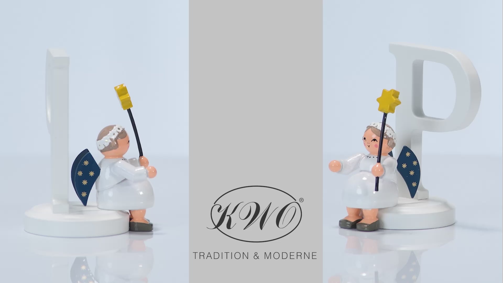 Der KWO Buchstabenengel "P" (Art. 75775) trägt ein weißes Gewand, die Flügel sind dunkelblau und mit 5 goldenen Sternchen bemalt. Der Buchstabenengel "P" wird in traditioneller Handwerkskunst im Erzgebirge mit viel Liebe zum Detail von Hand gefertigt.
