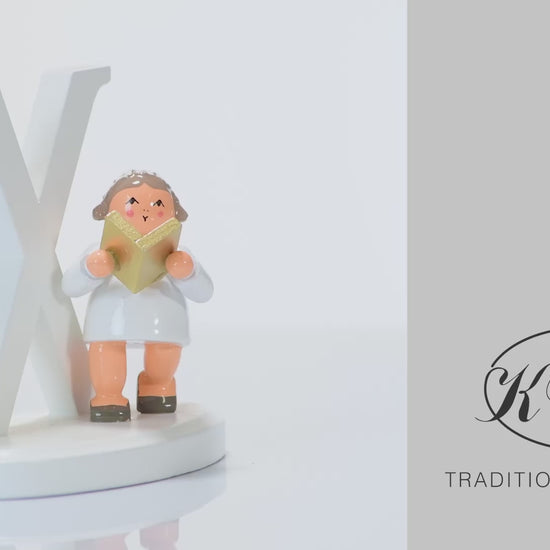 Der KWO Buchstabenengel "X" (Art. 75783) trägt ein weißes Gewand, die Flügel sind dunkelblau und mit 5 goldenen Sternchen bemalt. Der Buchstabenengel "X" wird in traditioneller Handwerkskunst im Erzgebirge mit viel Liebe zum Detail von Hand gefertigt.