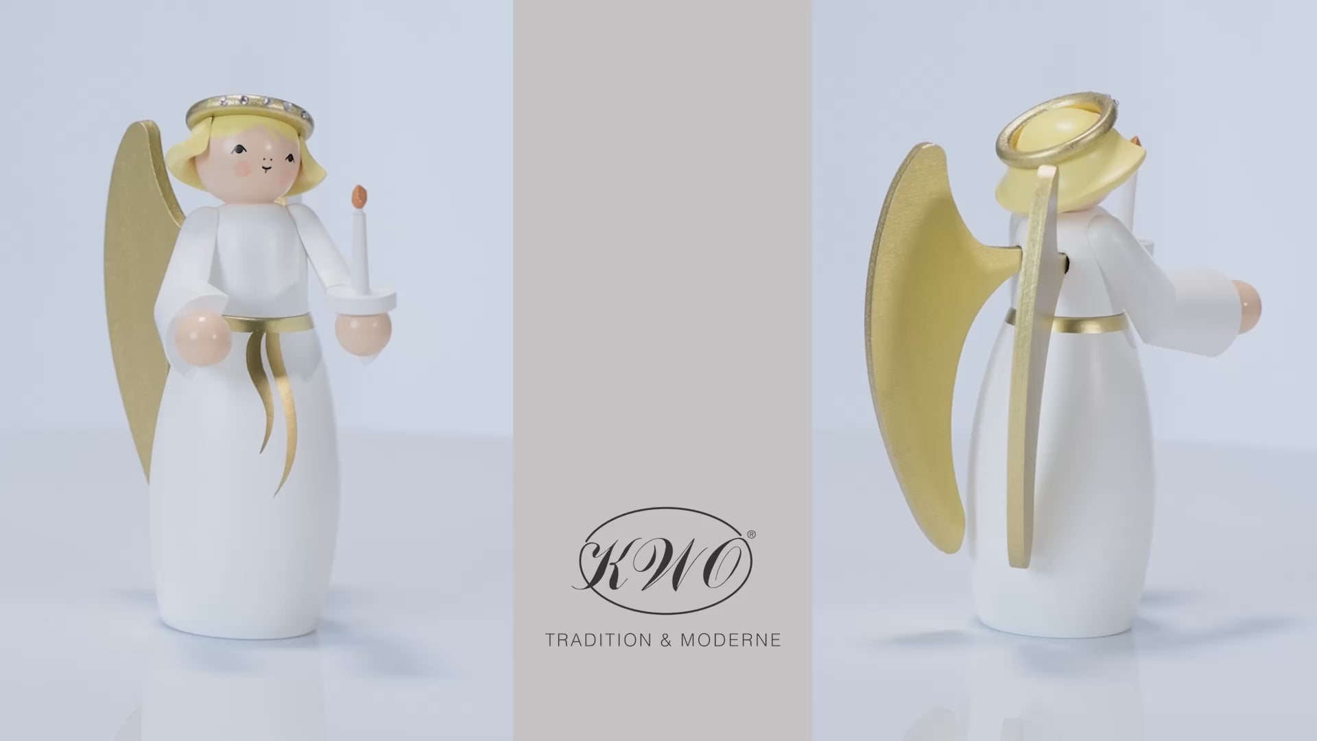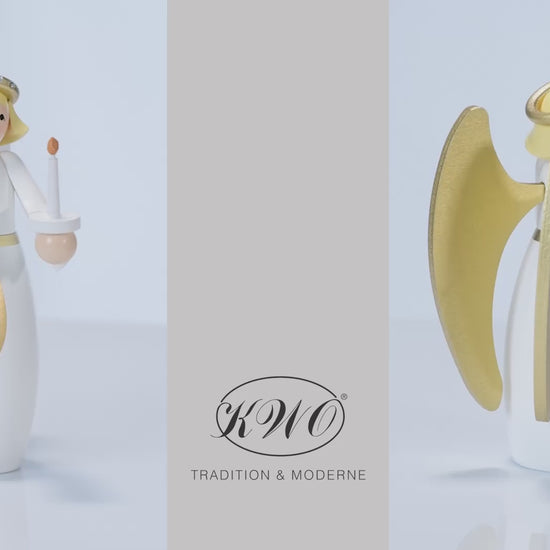 Der KWO Engel mit Kerze (Art. 75349) wird in traditioneller Handwerkskunst im Erzgebirge mit viel Liebe zum Detail von Hand gefertigt.