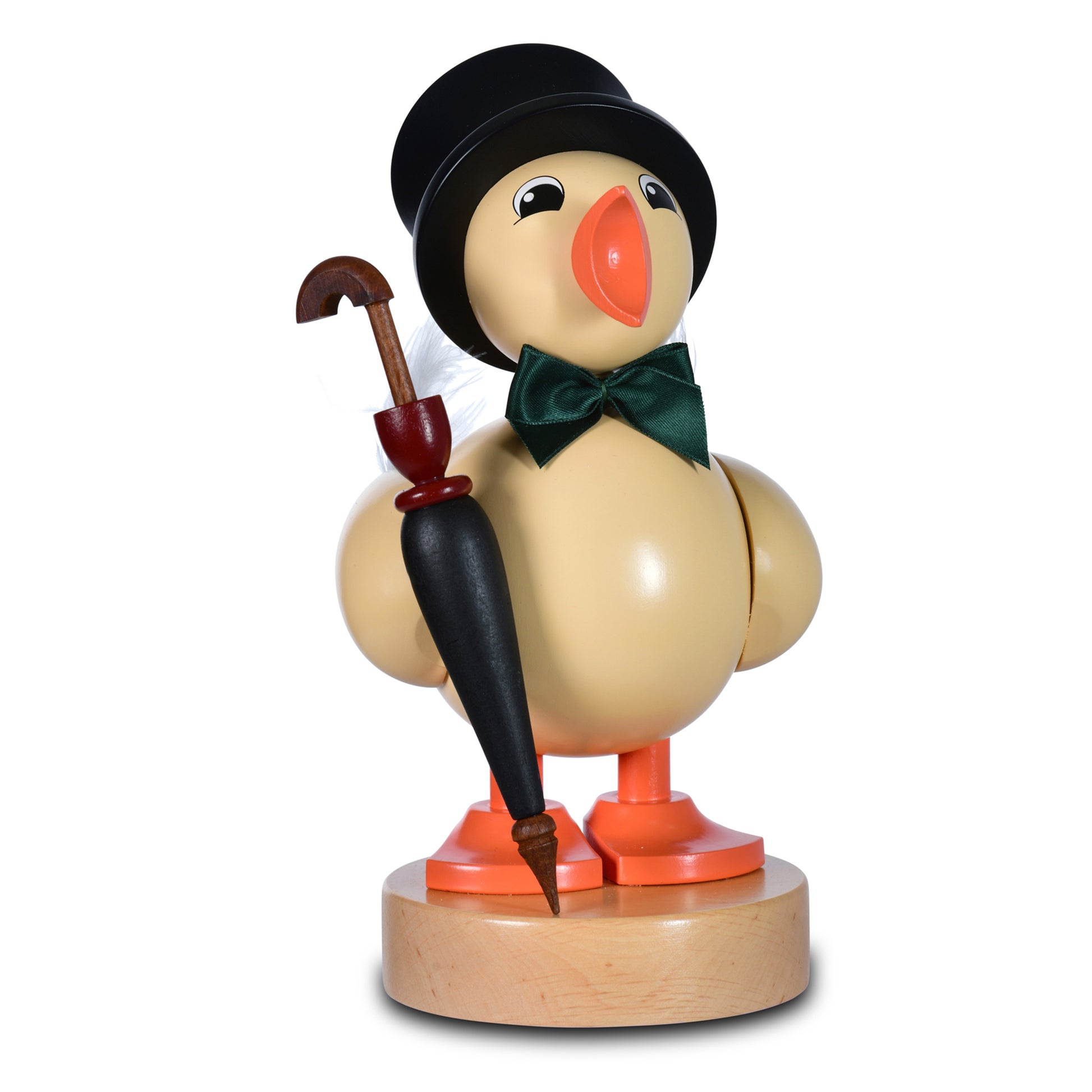 Das "Frühlingsküken mit Schirm" (Art. 42127) ist aus der Serie "Küken" von KWO und wird in liebevoller Handarbeit im Erzgebirge gefertigt. Das "Frühlingsküken mit Schirm" von KWO ist bunt lackiert. Eine, aufgrund der Höhe und der liebevollen Details, auffallend schöne Osterdekoration.