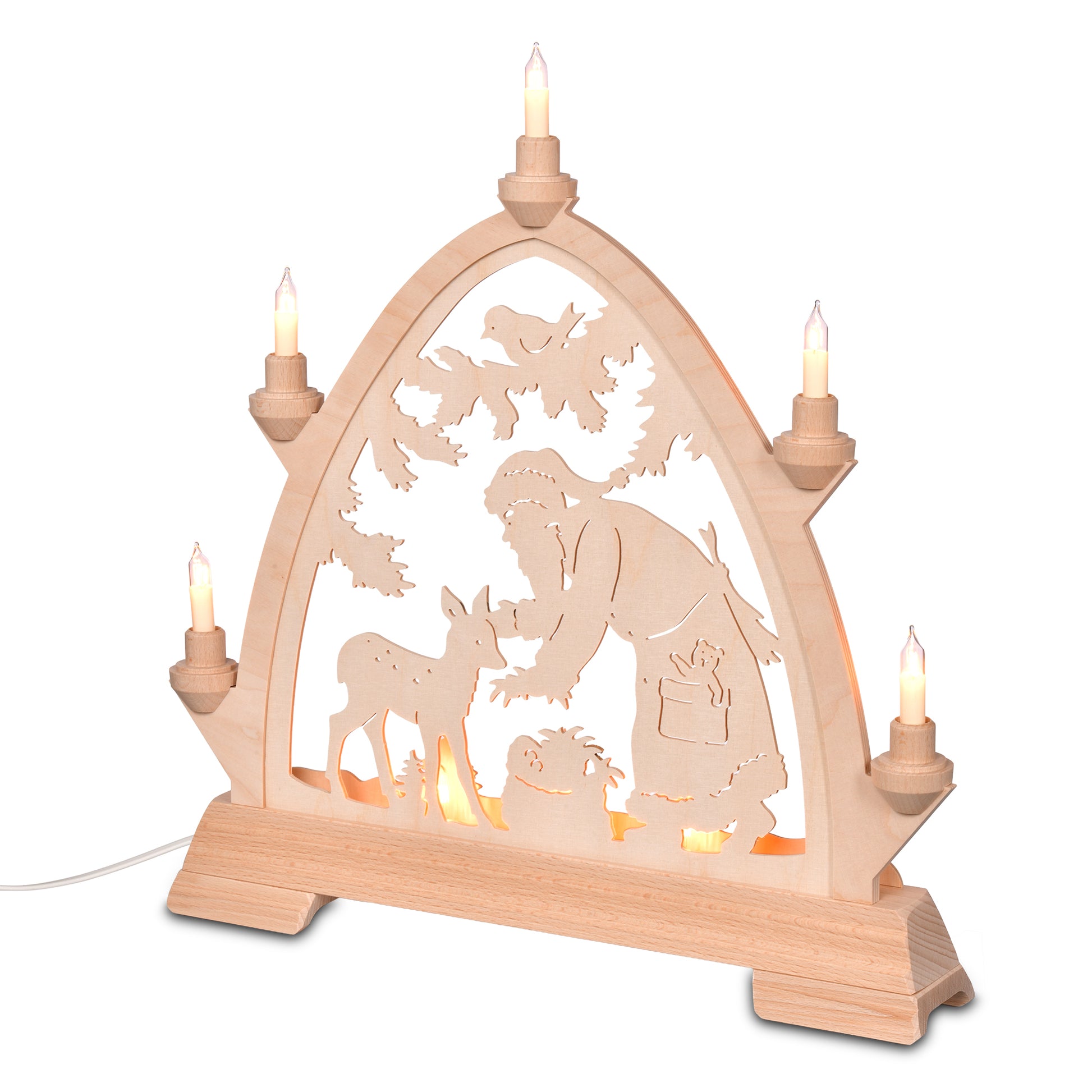 Schwibbogen - Gotischer Bogen "Weihnachtsmann mit Reh"