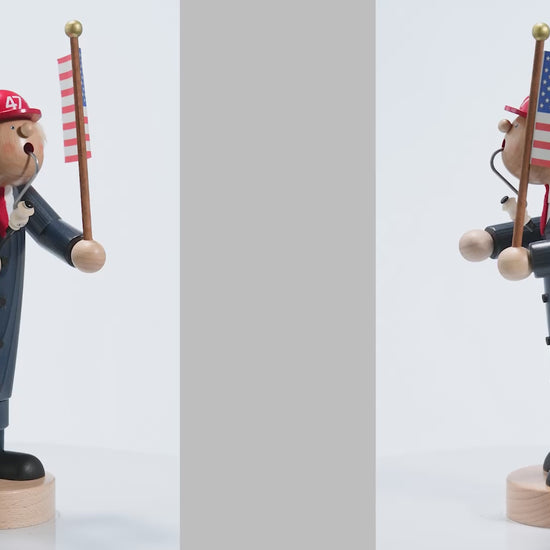 Der Räuchermann "Präsident" (Art. 21747) von KWO ist aus der Serie "Die Dünnen" und wird in traditioneller Handwerkskunst im Erzgebirge mit viel Liebe zum Detail von Hand gefertigt. Unser Räuchermann "Präsident" von KWO ist gebeizt. In seiner linken Hand trägt er die amerikanische Flagge. An wen erinnert dich unser Präsident?