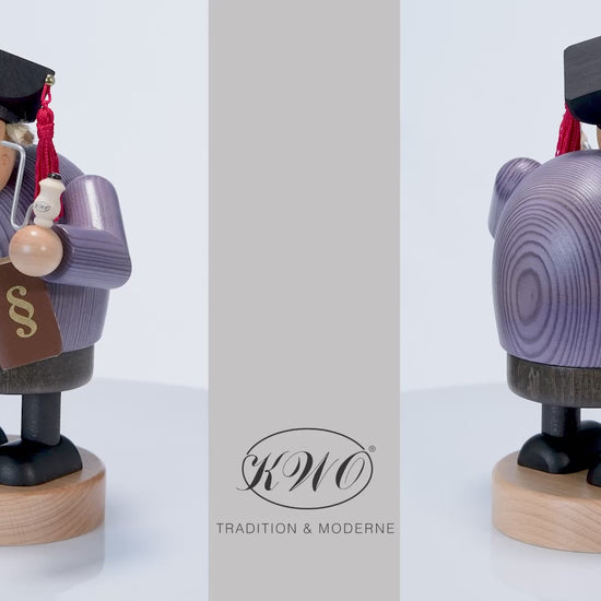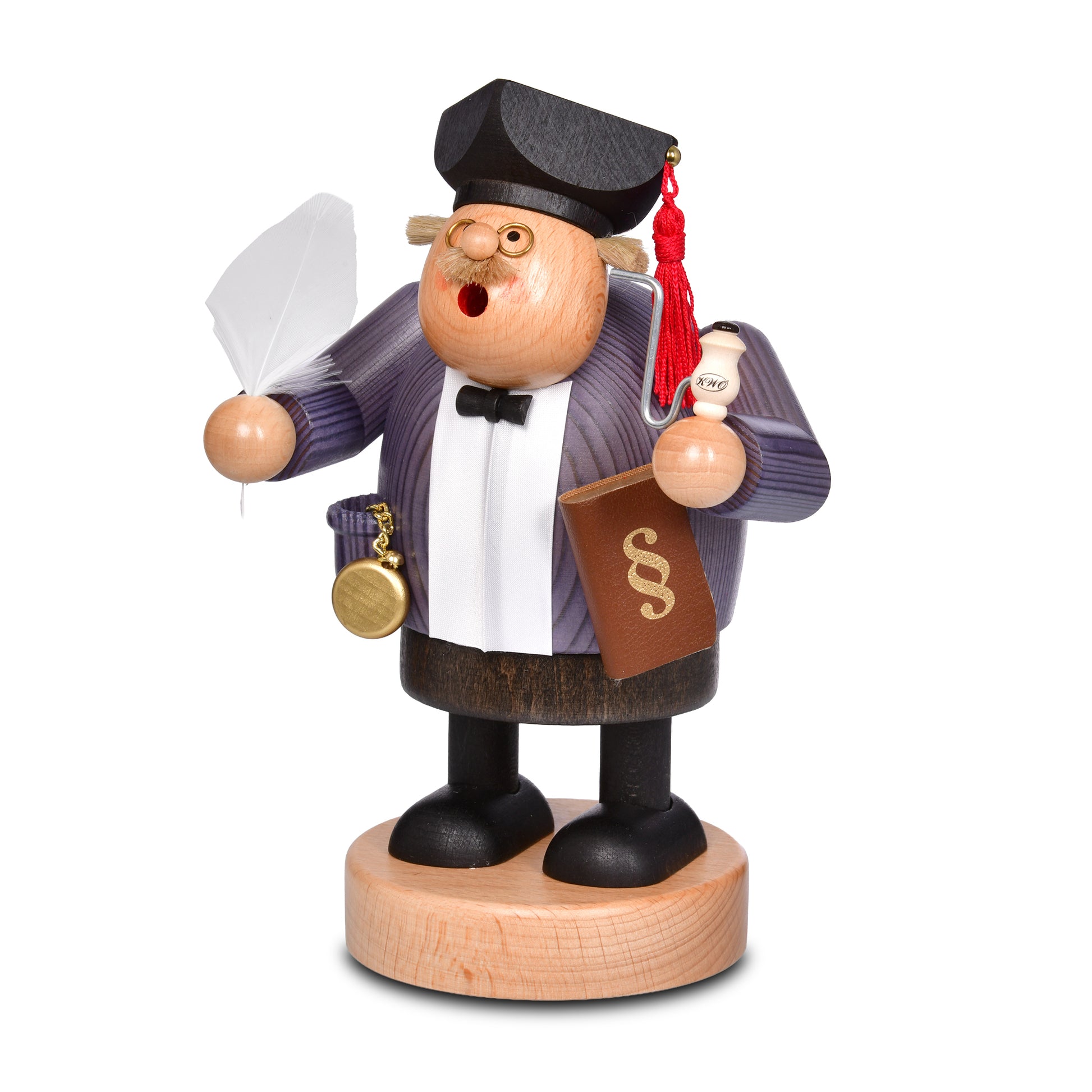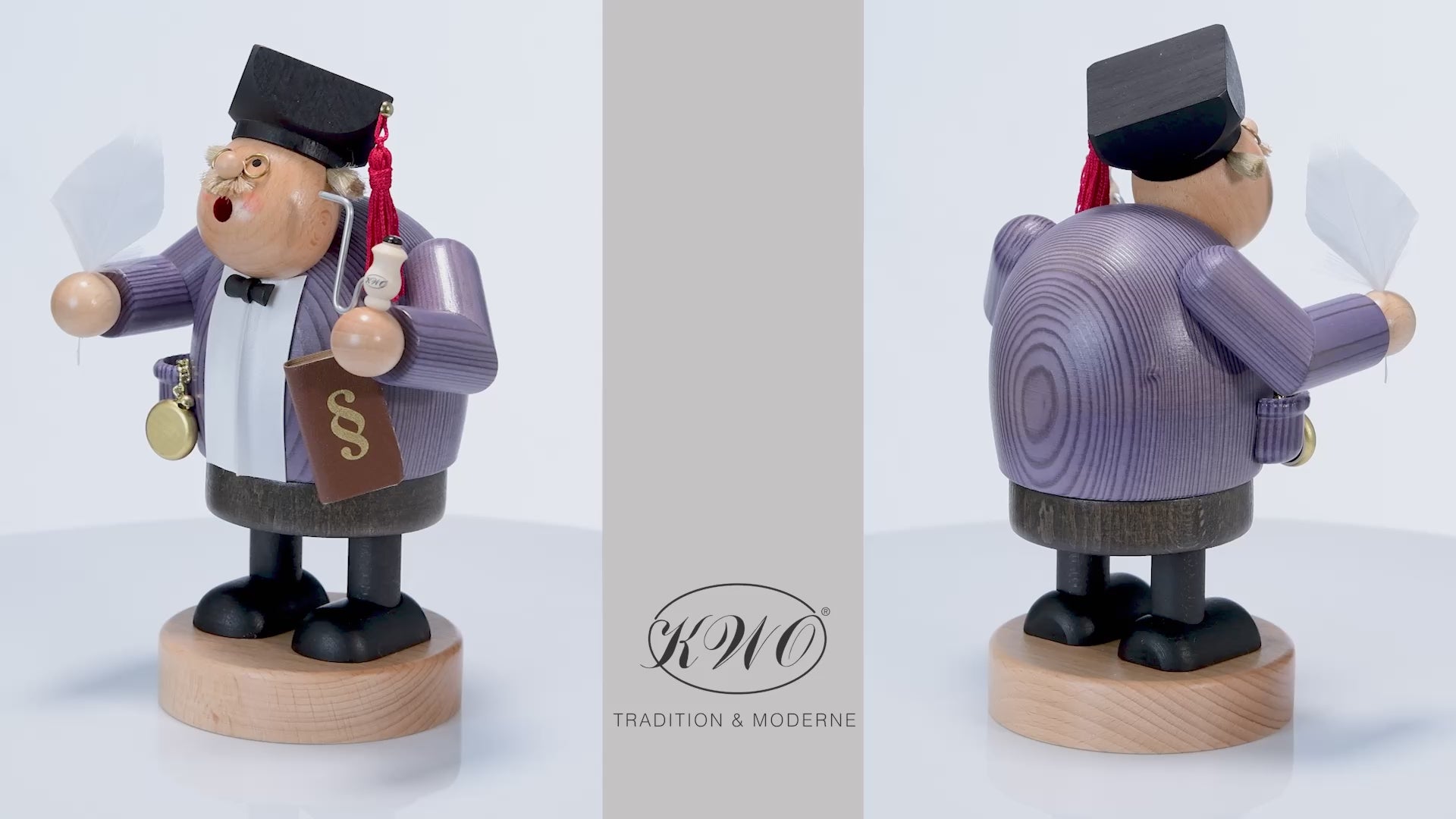 Der Räuchermann Advokat (Art. 21580) von KWO ist aus der Serie "Die Dicken" und wird in traditioneller Handwerkskunst im Erzgebirge mit viel Liebe zum Detail von Hand gefertigt. Mit seiner Schreibfeder und dem Gesetzbuch ist er der Rechtsanwalt.