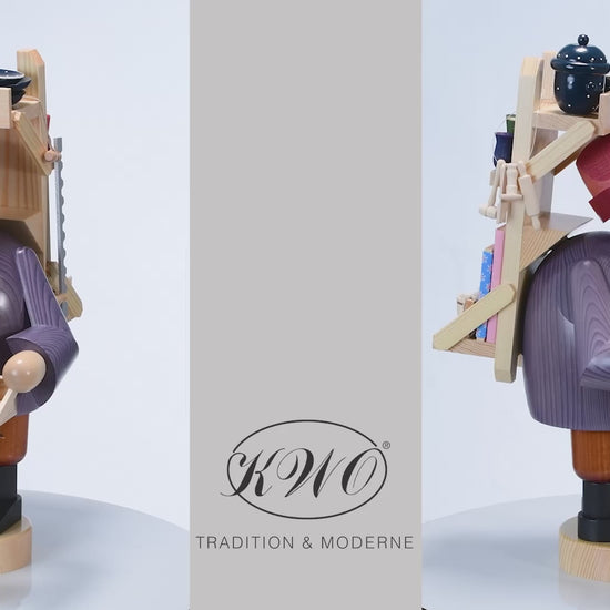 Der Räuchermann "Hausierer" (Art. 21266) von KWO ist aus der Serie "Die Bärtigen" und wird in traditioneller Handwerkskunst im Erzgebirge mit Liebe zum Detail von Hand gefertigt. Unser "Hausierer" ist gebeizt und er präsentiert in seinem Bauchladen seine Waren. Er trägt auf seinem Rücken eine Kiepe, mit der er viele seiner Waren transportieren kann. So macht sich der Hausierer auf den Weg.