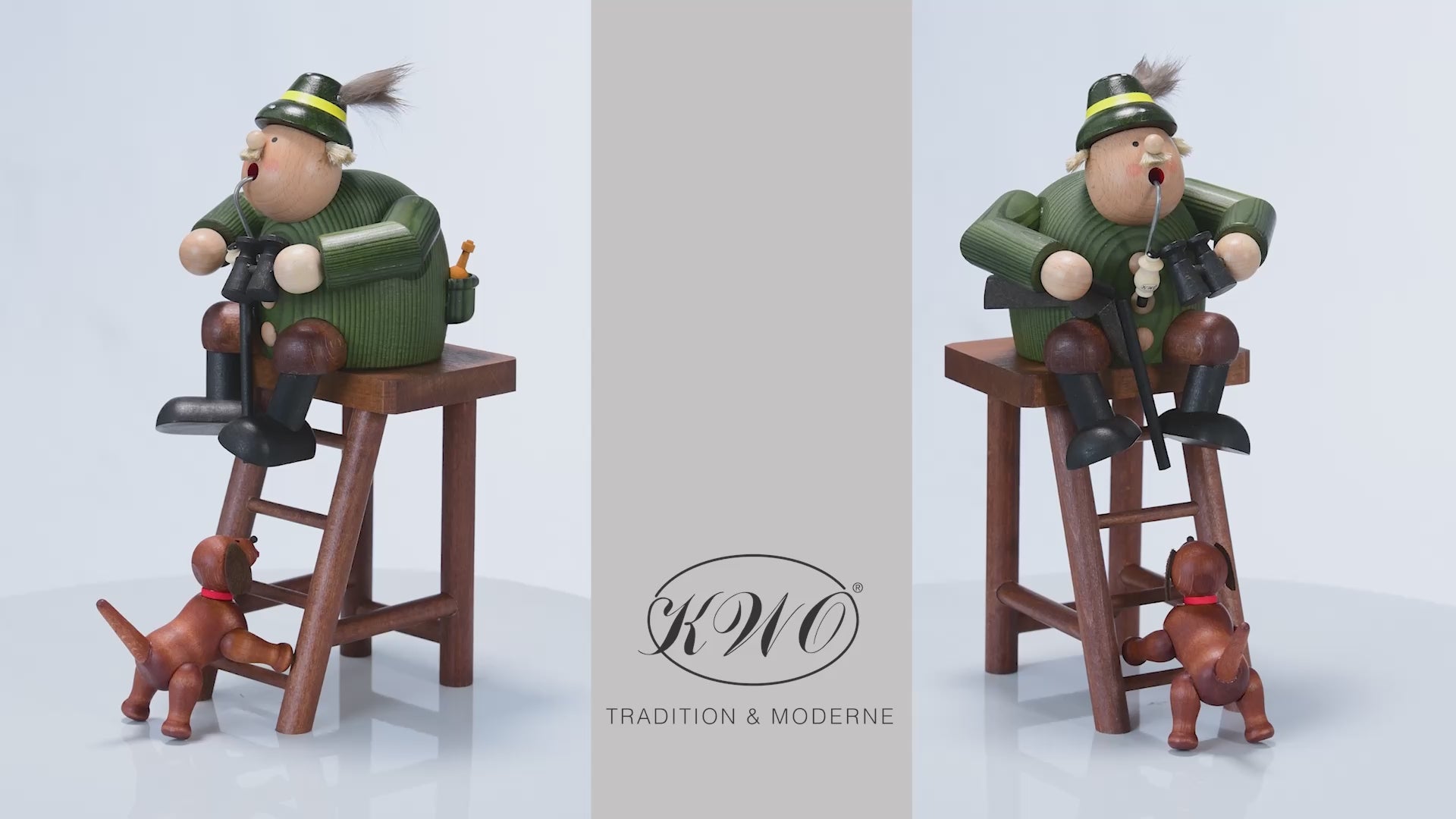 Der Räuchermann "Jäger auf Hochsitz" (Art. 21568) von KWO ist aus der Serie "Die Dicken" und wird in traditioneller Handwerkskunst im Erzgebirge mit viel Liebe zum Detail von Hand gefertigt. Unser Räuchermann Kantenhocker "Jäger auf Hochsitz" von KWO ist gebeizt. Er sitz in den Morgenstunden gemütlich auf seinem Hochsitz und schaut nach dem Rotwild, sein Hund ist sein ständiger Begleiter.