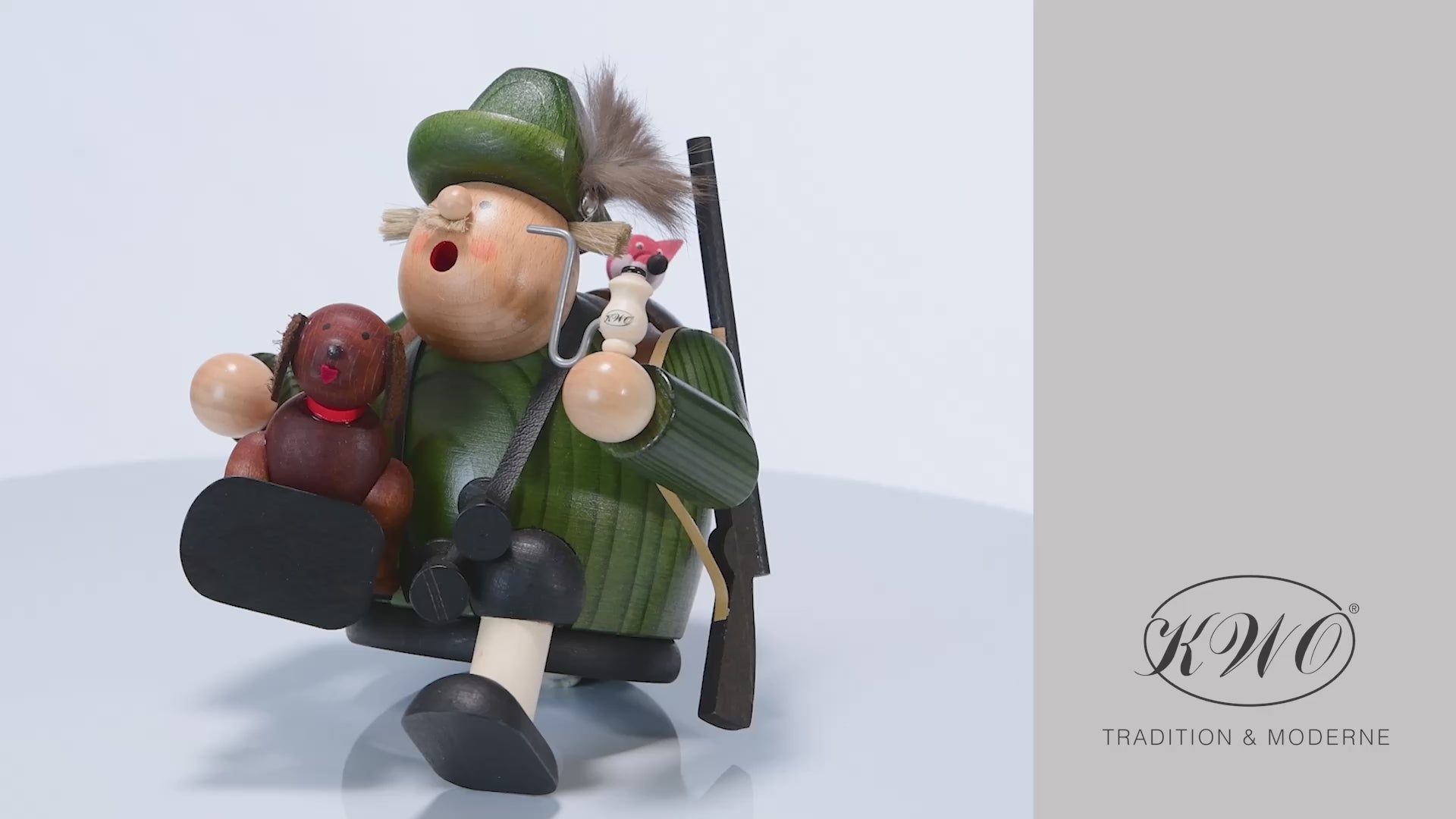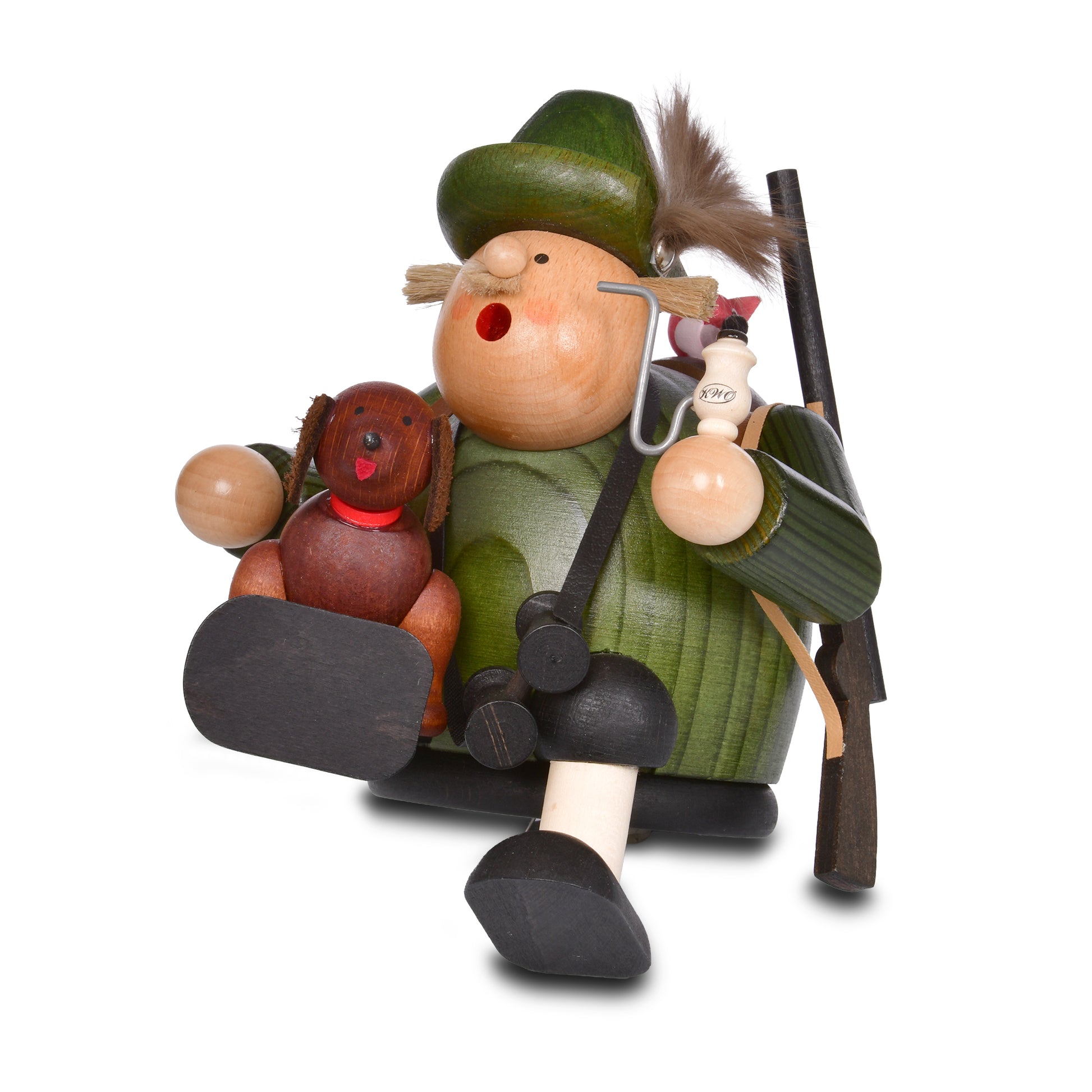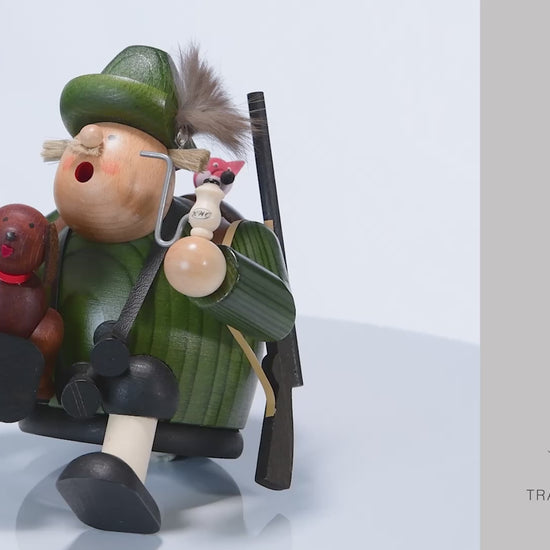 Der Räuchermann Kantenhocker "Jäger" (Art. 21567) von KWO ist aus der Serie "Die Dicken" und wird in traditioneller Handwerkskunst im Erzgebirge mit viel Liebe zum Detail von Hand gefertigt. Unser Räuchermann Kantenhocker "Jäger" von KWO ist gebeizt. Mit seinem Hund und seinem Gewehr geht er zu Jagd.