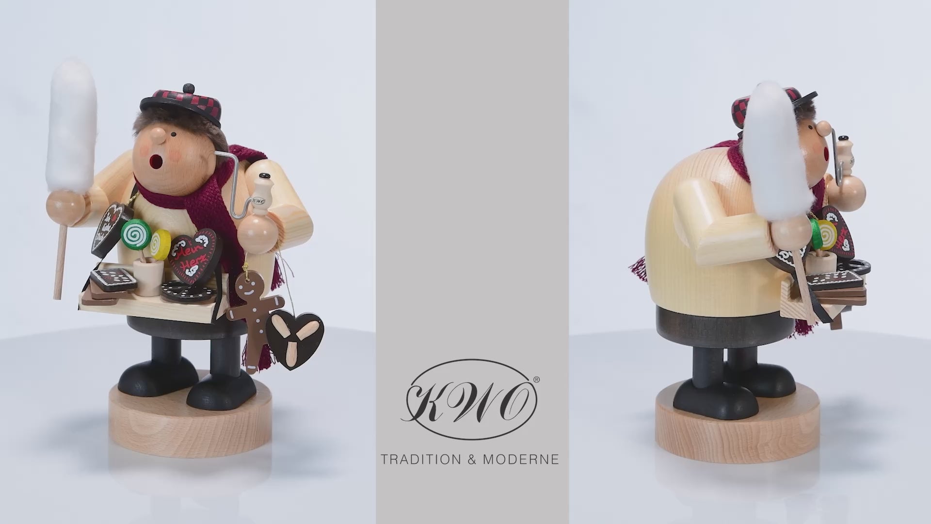 Der Räuchermann "Lebkuchenverkäufer" (Art. 21648) von KWO ist aus der Serie "Die Dicken" und wird in traditioneller Handwerkskunst im Erzgebirge mit viel Liebe zum Detail von Hand gefertigt. Unser Räuchermann "Lebkuchenverkäufer" von KWO ist gebeizt. Mit seinem Bauchladen voller Leckereien, besucht er den Weihnachtsmarkt.