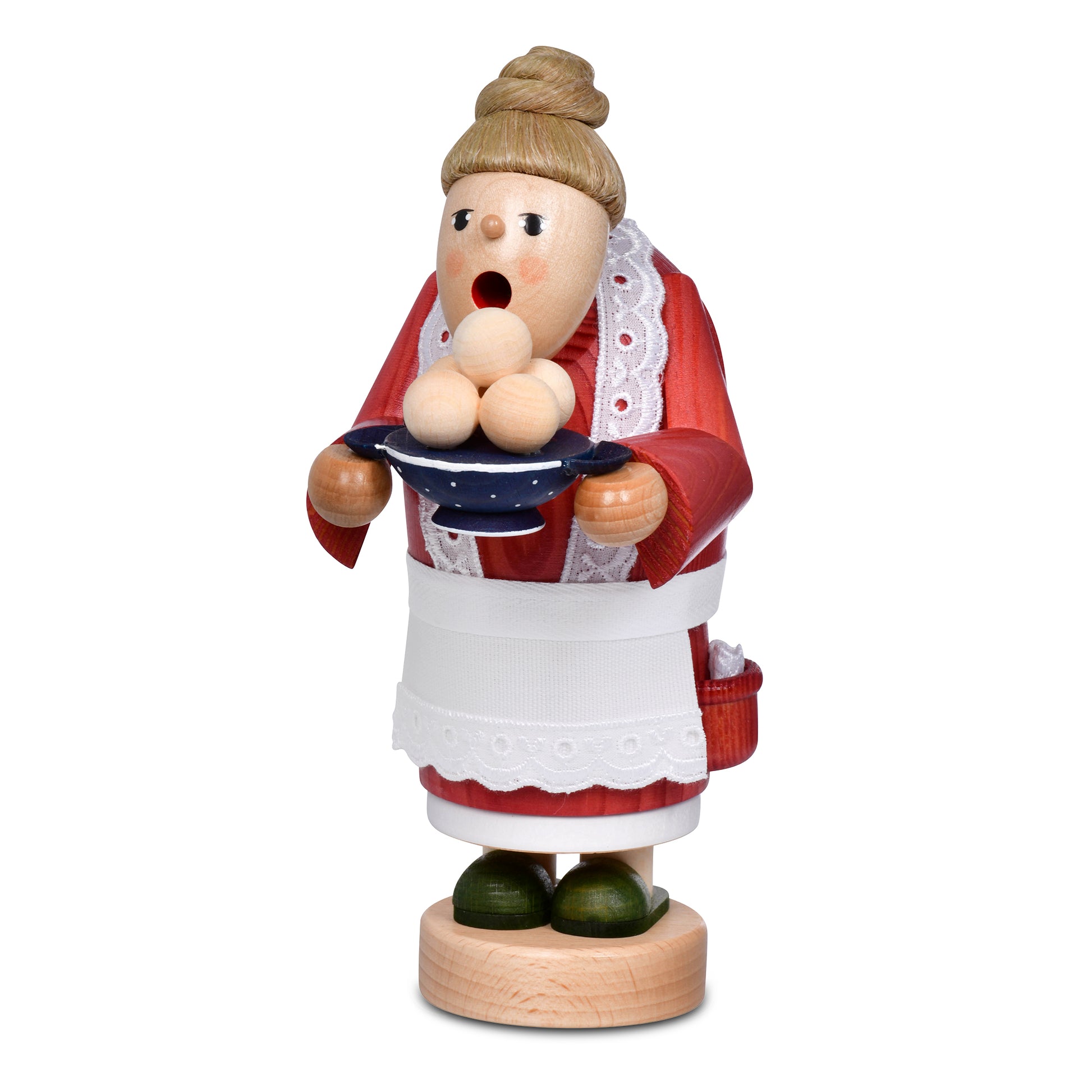 Die Räucherfrau "Oma mit Klößen" (Art. 21074) von KWO ist aus der Serie "Die Bärtigen" und wird in traditioneller Handwerkskunst im Erzgebirge mit viel Liebe zum Detail von Hand gefertigt. Unsere Räucherfrau "Oma mit Klößen" von KWO ist rot gebeizt mit Schürzte, bereitet Sie das Sonntagsessen vor.