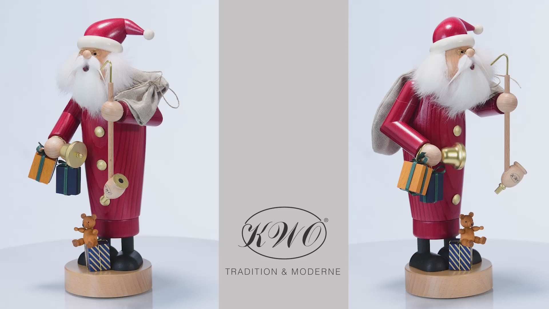 Der Räuchermann Weihnachtsmann (Art. 21705) von KWO ist aus der Serie "Die Dünnen" und wird in traditioneller Handwerkskunst im Erzgebirge mit viel Liebe zum Detail von Hand gefertigt. Mit seiner langen Pfeife und den Geschenken ist er eine Freude zur Weihnachtszeit.