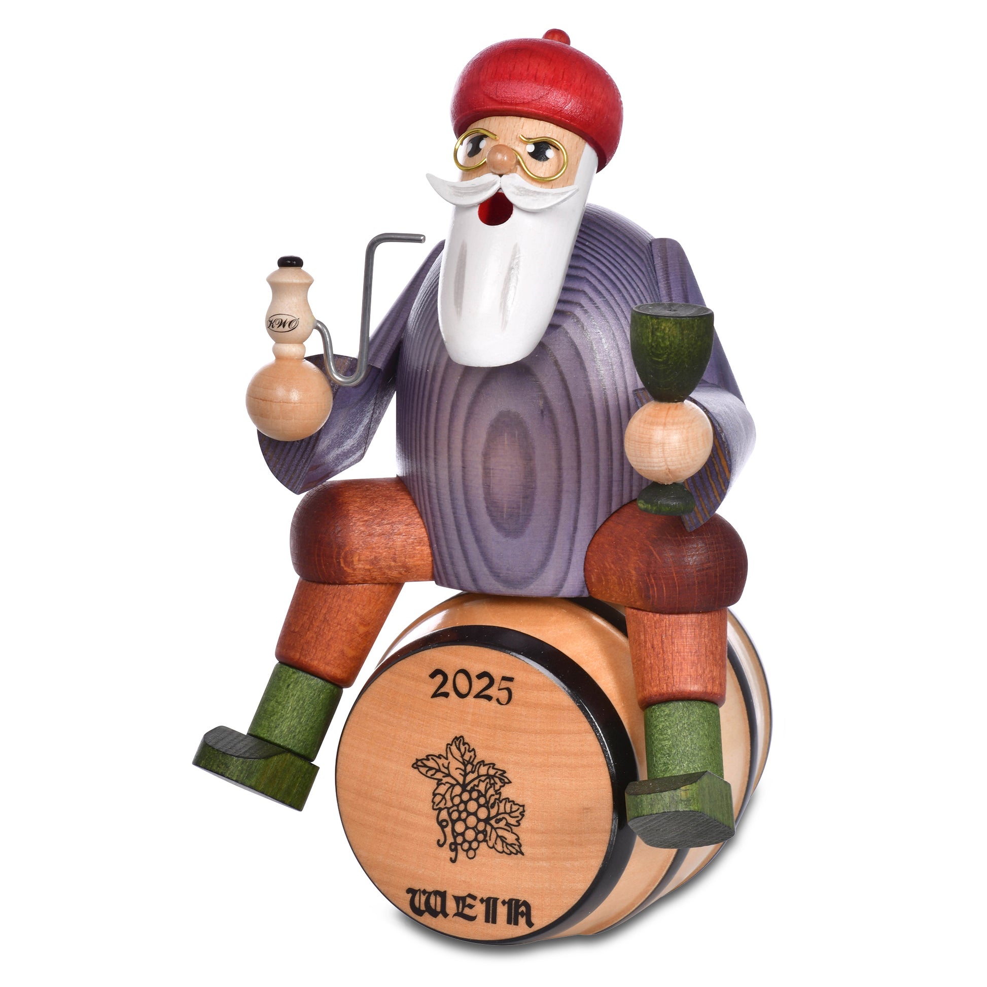 Der Räuchermann "Weinhändler" (Art. 21014) von KWO ist aus der Serie "Die Bärtigen" und wird in traditioneller Handwerkskunst im Erzgebirge mit viel Liebe zum Detail von Hand gefertigt. Unser Räuchermann "Weinhändler" von KWO ist gebeizt und er sitzt auf dem dicken Holzfass, in der linken Hand einen Becher, um den Wein zu probieren. Die Jahreszahl auf dem Fass entspricht immer dem aktuellen Jahr.