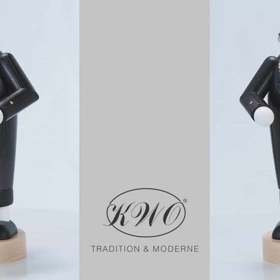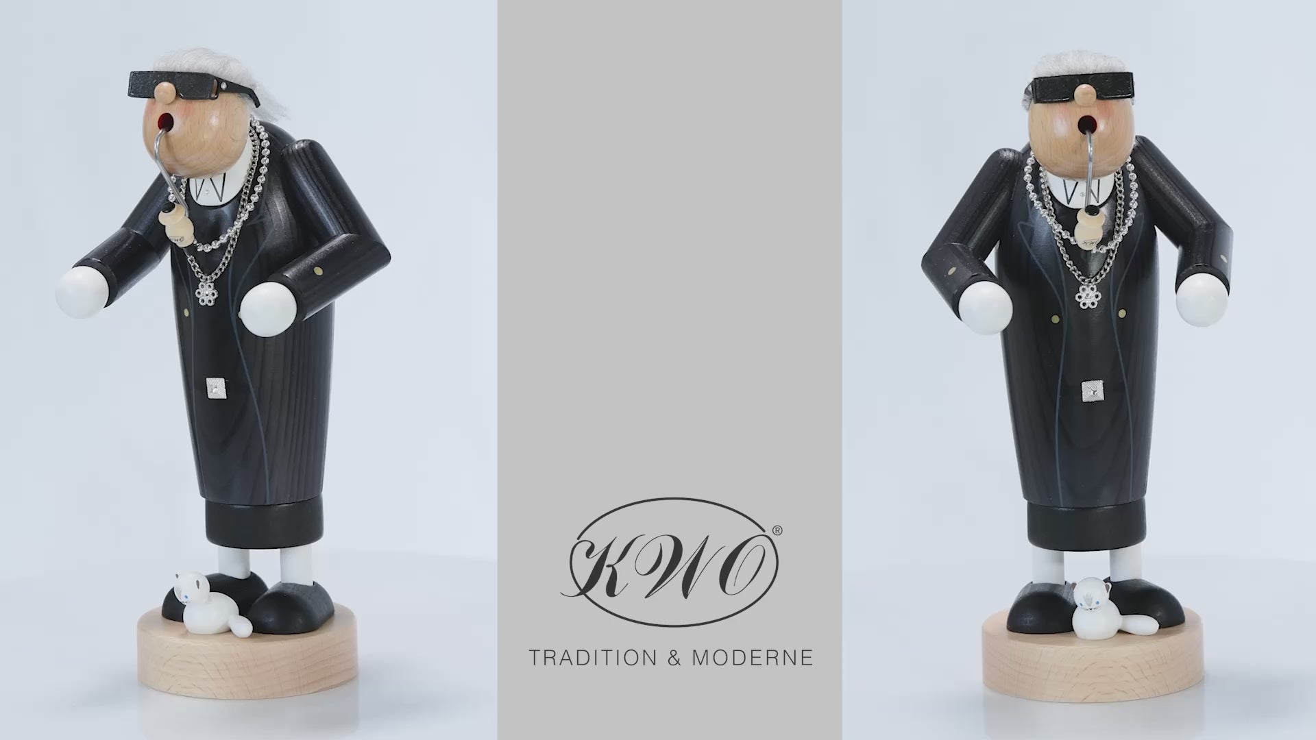 Der Räuchermann "Modezar" (Art. 21745) von KWO ist aus der Serie "Die Dünnen" und wird in traditioneller Handwerkskunst im Erzgebirge mit viel Liebe zum Detail von Hand gefertigt. An wen erinnert unser Modezar?