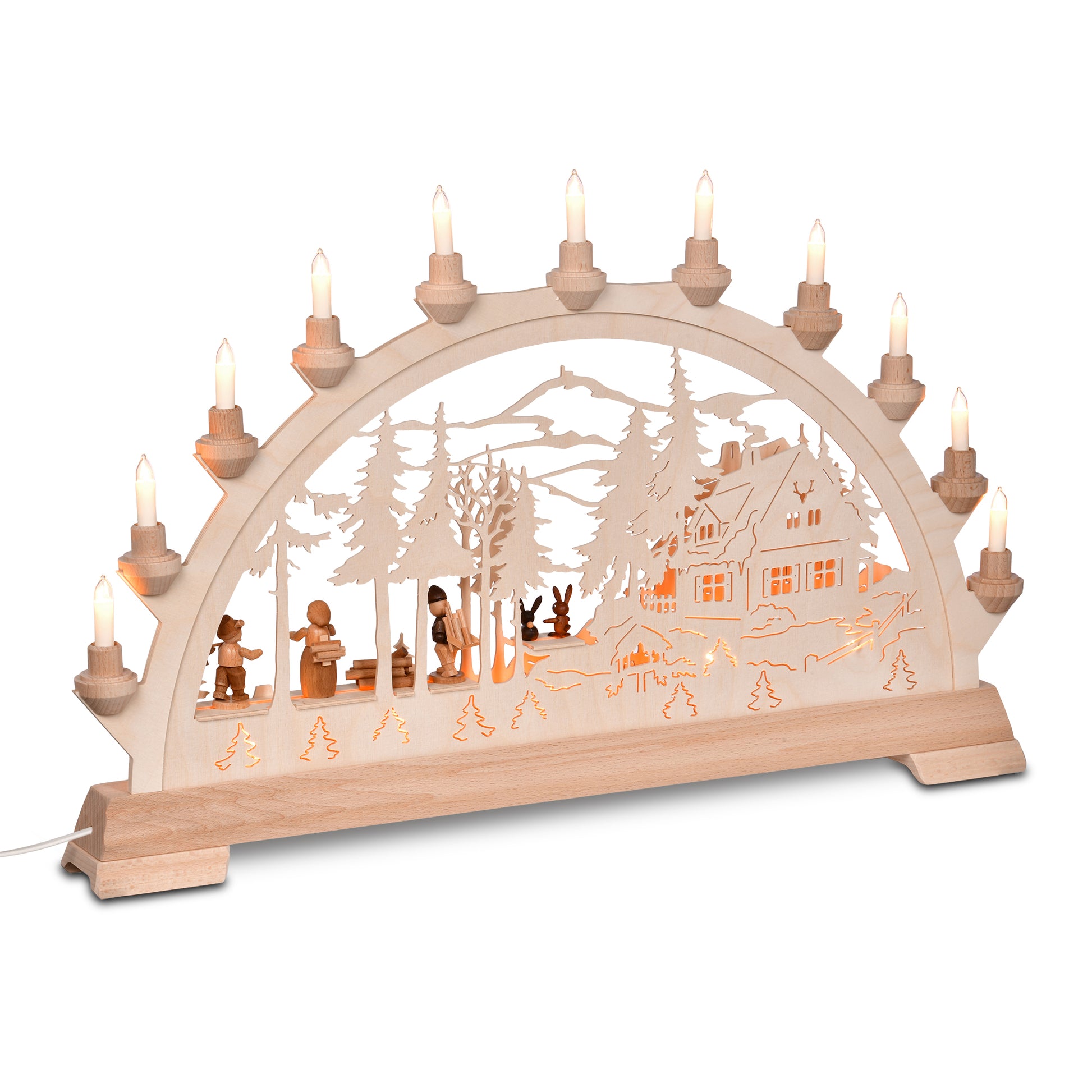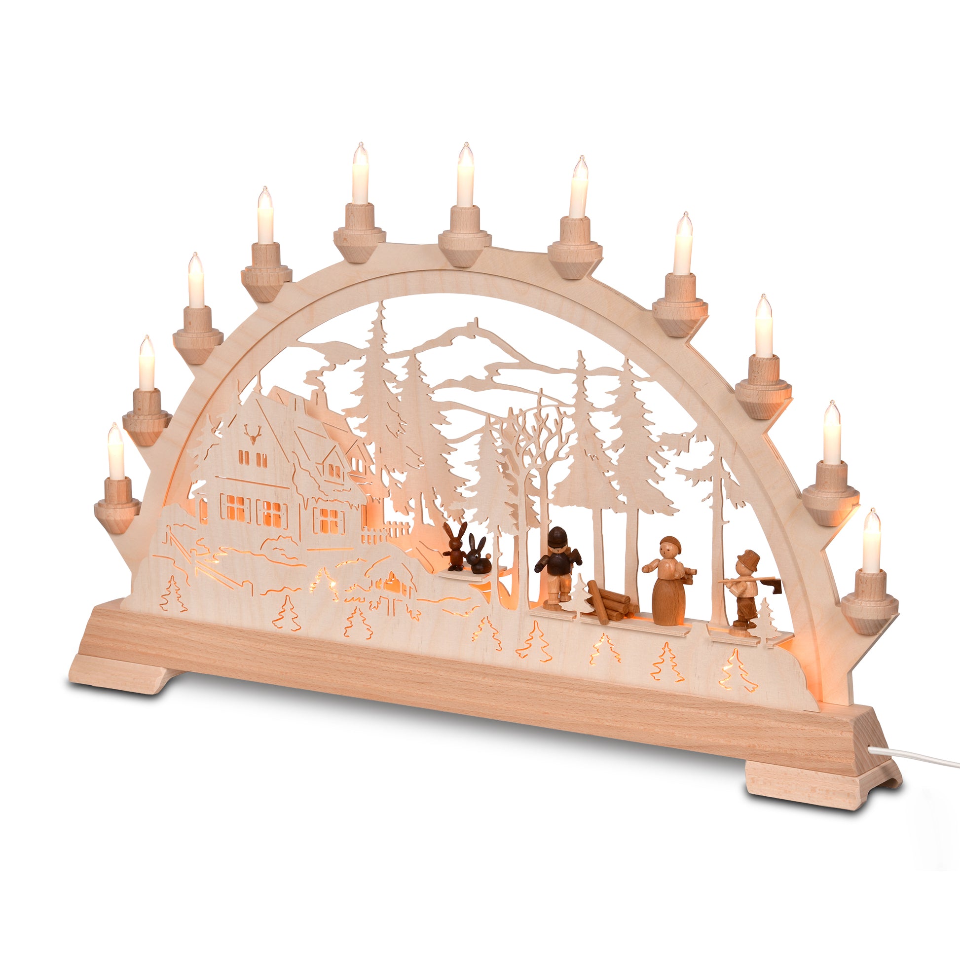 Der Bogen "Forsthaus" mit Waldleuten (Art. 62022) ist aus der Serie "Schwibbögen" von KWO. Wir freuen uns, eine derart anspruchsvolle Arbeit für sie bereithalten zu können.