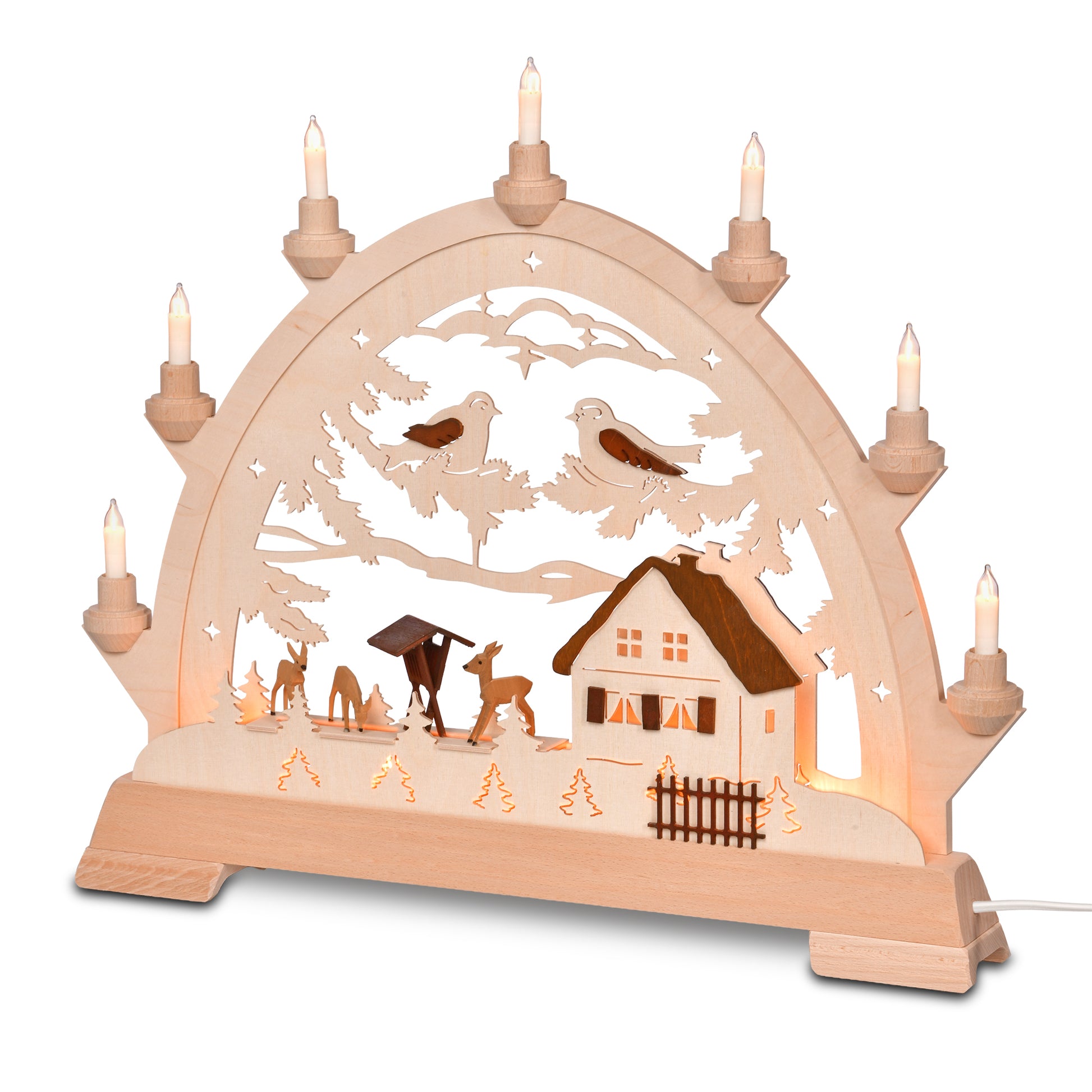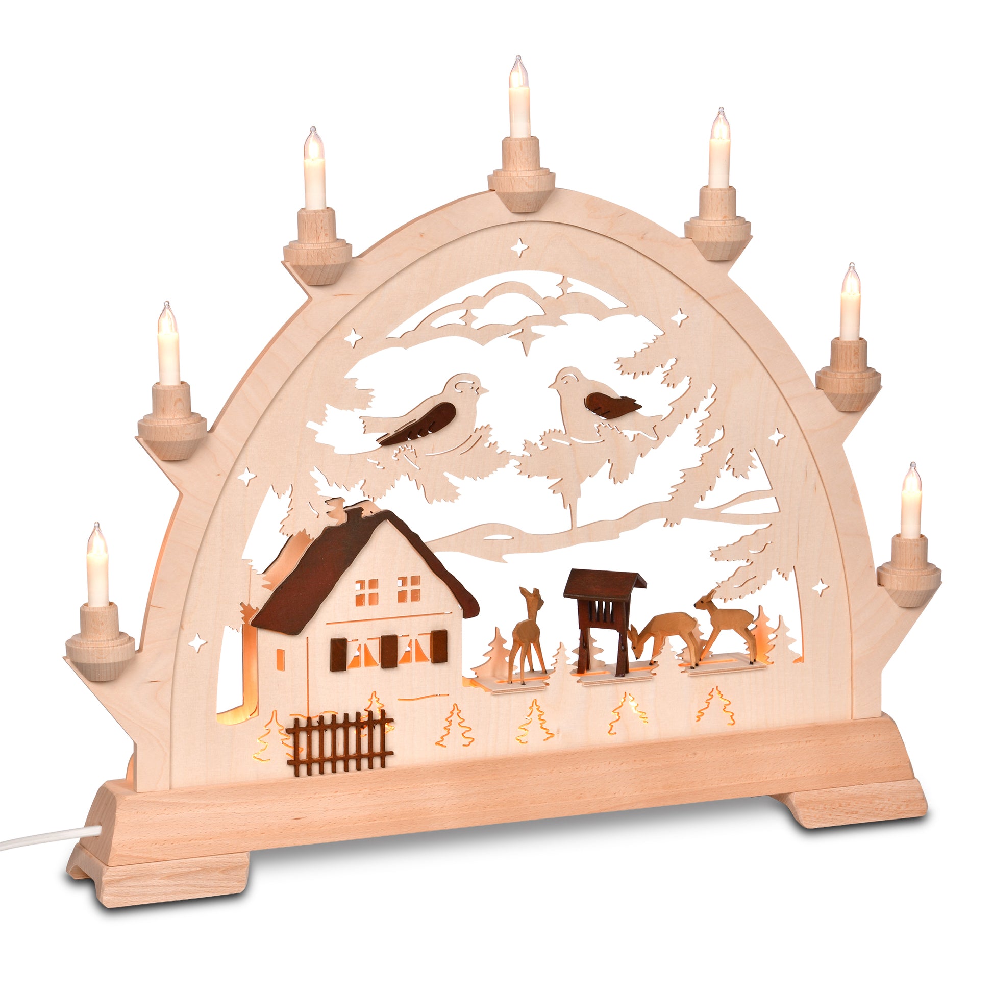 Der Bogen "Rundbogen mit Rehe" (Art. 62032) ist aus der Serie "Schwibbögen" von KWO. Wir freuen uns, eine derart anspruchsvolle Arbeit für sie bereithalten zu können.