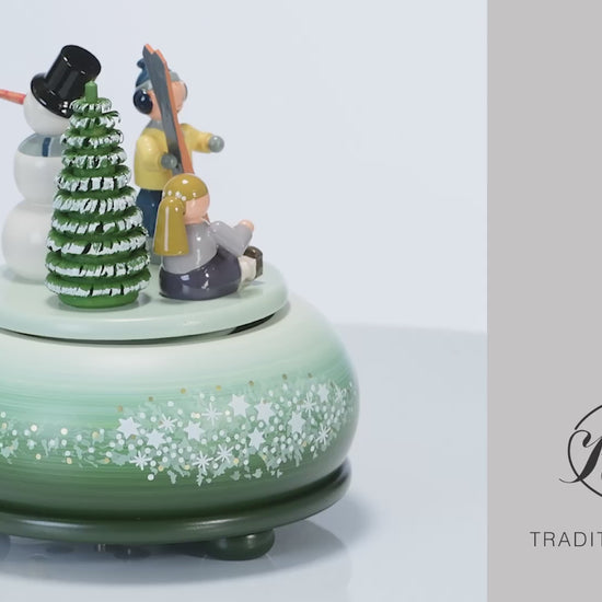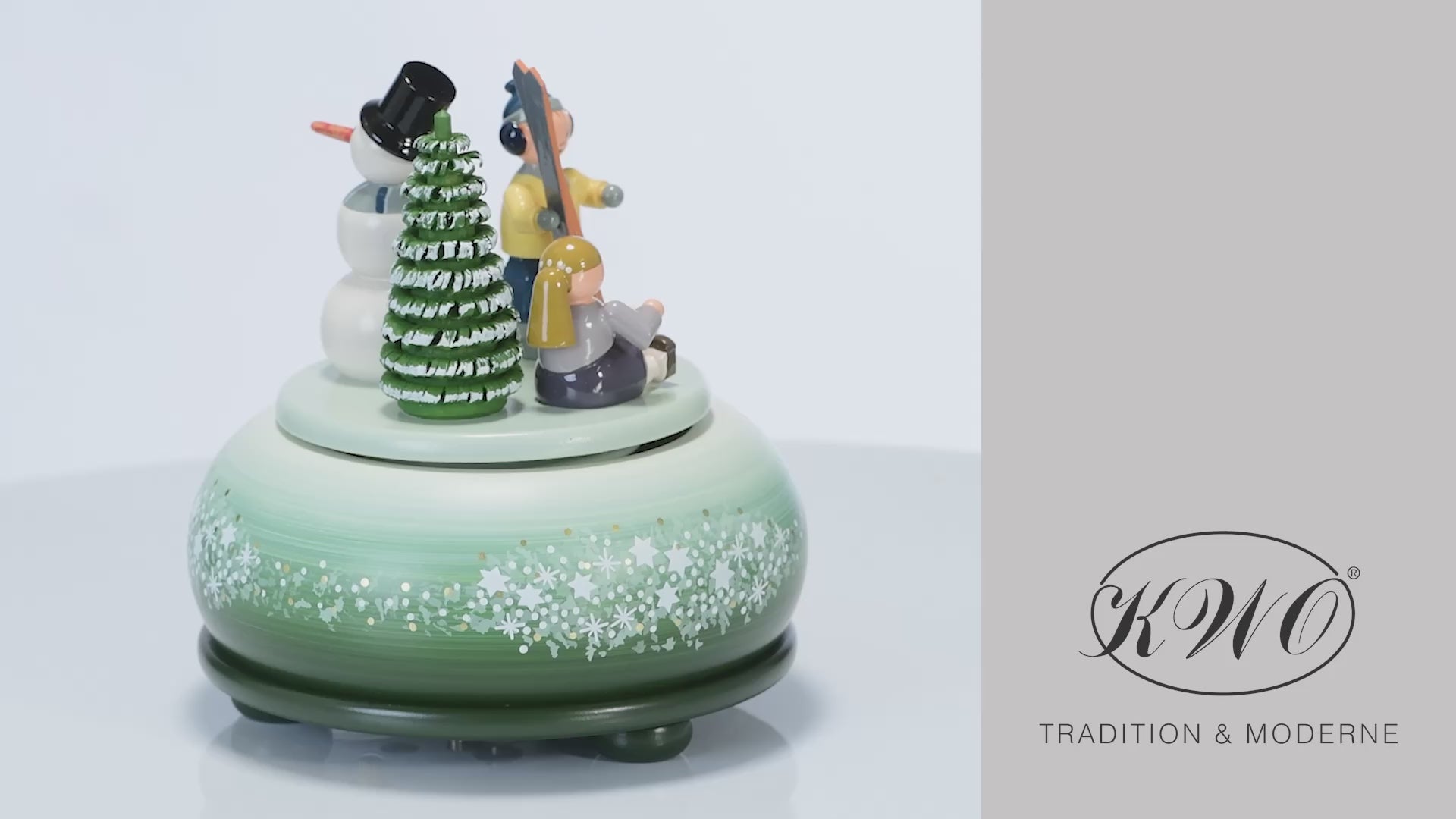 Die KWO Spieldose Winterfreuden (Art. 13024) ist 13 cm hoch. Mit großem Aufwand werden alle Bauteile manuell hergestellt. Jede Dose wird von Hand bemalt und stellt für sich ein kleines Unikat dar. Die KWO Spieldose Winterfreuden ist mit einem mechanischen, 18er Spielwerk von Sankyo versehen und spielt die Melodie: "Leise rieselt der Schnee"… Das Spielwerk wird von unten aufgezogen und abgestellt. Als Spielwerk kommen nur Modelle zum Einsatz, welche unseren hohen Qualitätsanforderungen genügen.