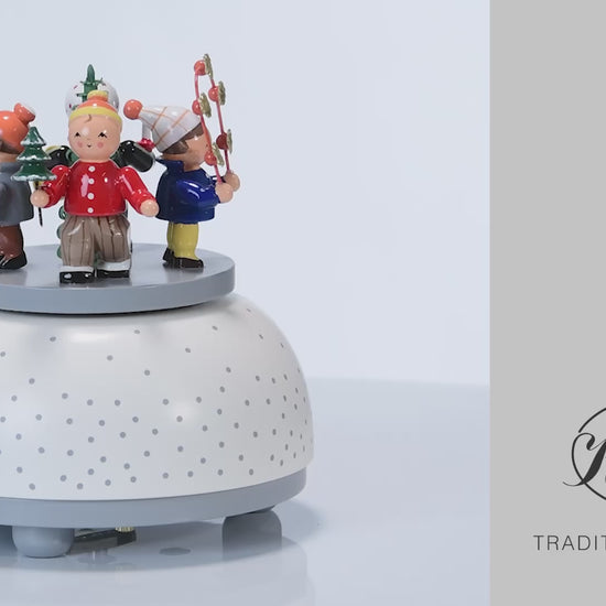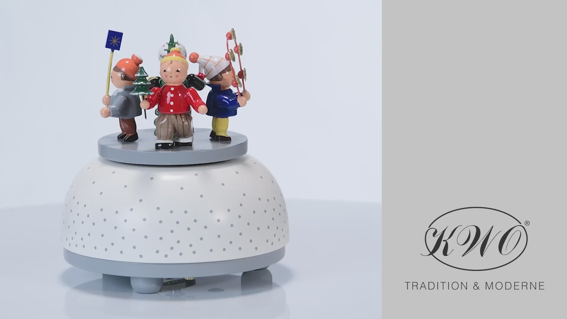 Die KWO Spieldose Winterkinder (Art. 13007) ist 12 cm hoch. Mit großem Aufwand werden alle Bauteile manuell hergestellt. Jede Dose wird von Hand bemalt und stellt für sich ein kleines Unikat dar. Die KWO Spieldose Winterkinder ist mit einem mechanischen, 18er Spielwerk von Sankyo versehen und spielt die Melodie: "Oh Tannenbaum"... Das Spielwerk wird von unten aufgezogen und abgestellt. Als Spielwerk kommen nur Modelle zum Einsatz, welche unseren hohen Qualitätsanforderungen genügen.