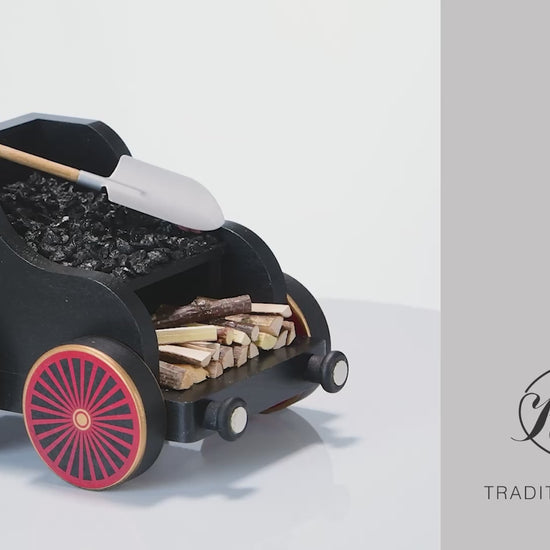 Der Tender (Art. 75824) für die Lok von KWO ist aus der Serie "Die Dicken" und wird in traditioneller Handwerkskunst im Erzgebirge mit viel Liebe zum Detail von Hand gefertigt. Er kann magnetisch an die Lok gehängt werden.