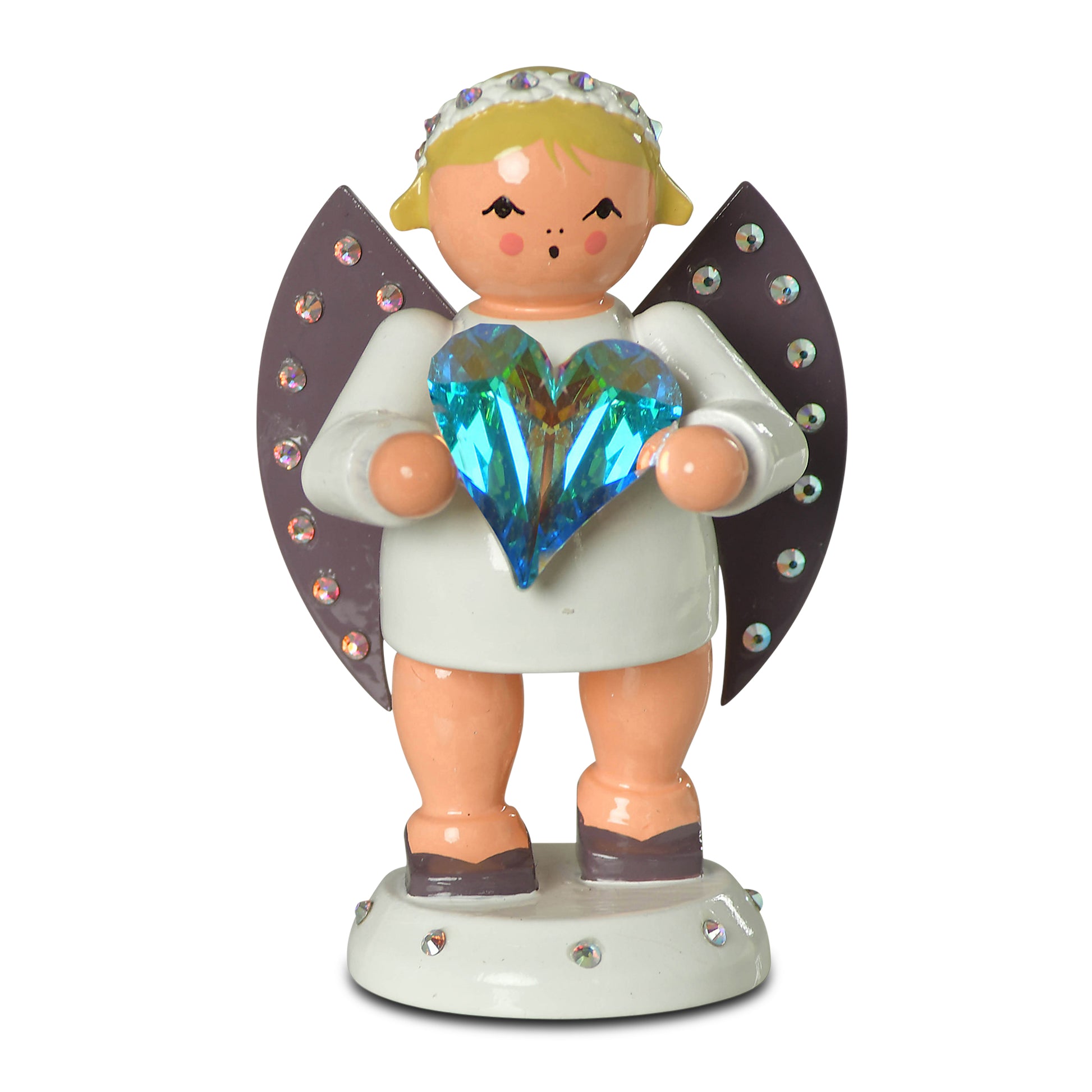 Der Engel "Zauberbote" mit buntem Swarovski-Herz ist auf 250 Stück limitiert, Jahresedition 2022. Der Engel ist inklusive Kerzensockel.